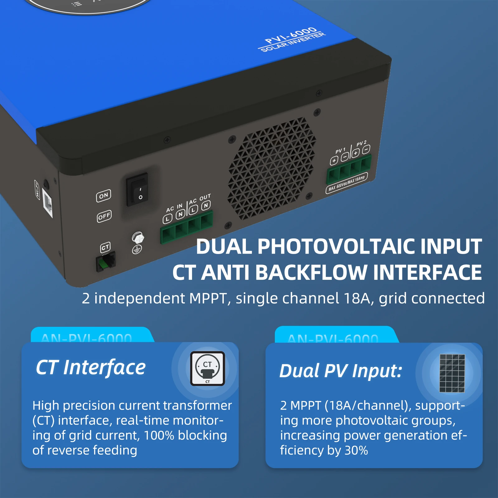 Equipped with cutting-edge MPPT (Maximum Power Point Tracking) technology, this solar inverter maximizes energy harvesting from your photovoltaic panels, enhancing output even under varying sunlight conditions. The impressive 18A output ensures that your water pumps and systems operate seamlessly without interruptions. Designed for compatibility with PV systems ranging from 10kW to 60kW, this inverter is a versatile and scalable solution for diverse energy needs.