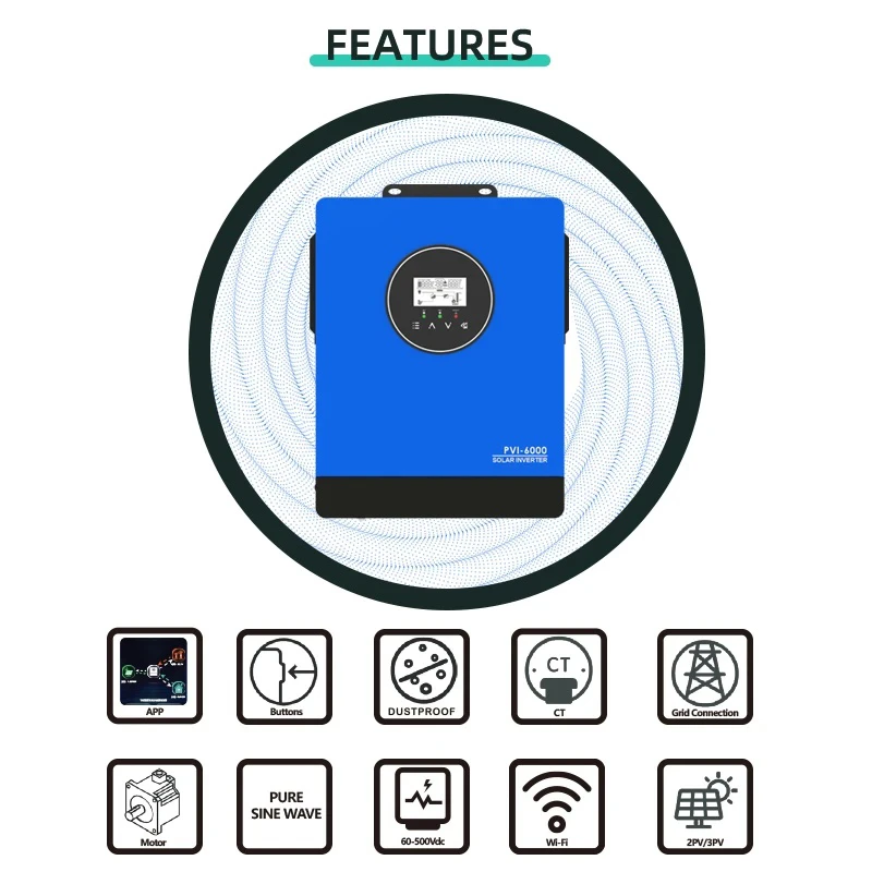 Choose the 10000W 6000W MPPT Solar Inverter for a smarter, greener, and more efficient energy solution. Reduce reliance on conventional energy, lower your carbon footprint, and enjoy greater savings with cutting-edge inverter technology.